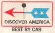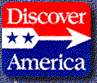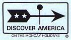 (Left: The current "Discover America" logo, from the TIA's website; Top Right: An early Black-And-White "Discover America" logo, used from the 1960s to sometime in the 1980s, from the April 1972 issue of Sunset Magazine; with the arrow pointing right and the slogan "Discover America on the Monday holidays". Bottom Right: A color "Discover America" logo, with the arrow pointing left and the more familiar slogan, "Discover America -- Best By Car". The color logo was from the US Highways website. All ® & © Travel Industry Association of America.) |