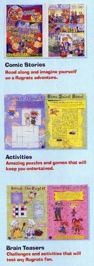 Contents:To see what was in RCA, click below. Index: (Left: Examples of what you'll find in every issue of Rugrats Comic Adventures, from an ad in the April 2001 issue of Nickelodeon Magazine; © 2001 Viacom.) |