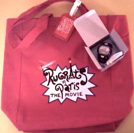 The first Rugrats In Paris swag kit was a combination backpack / picnic set. This was also the first merchandise item to bear the Rugrats In Paris logo. For details on this item, click here.
