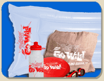 Embassy Suites is also co-sponsoring a special contest where 5 lucky winners will receive a 7 day, 6 night, round-trip vacation for 4 people to an Embassy Suites hotel in Puerto Rico (top right), where they'll also receive US$1000 cash, plus join the fun at a special "island party" (Total Value: US$6800 for each prize package). 500 people will win a consolation prize -- a "Rugrats Go Wild Island Survival Kit" (bottom right), consisting of a bag, frisbee inflatable mattress, waterbottle and goggles -- all emblazoned with the "Rugrats Go Wild" logo (Total Value: US$15 for each prize package). Participants aged 5 to 15 years may enter either by mailing their entries in, by buying specially marked Cap'n Crunch or Life cereals, or online at Nick.Com. Contest closes 10/24/2003. (All graphics from Nick.Com; ©2003 Viacom.) |