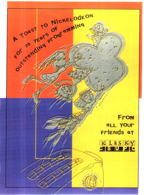Left: Ad from Klasky-Csupo saluting Nickelodeon on its 20th