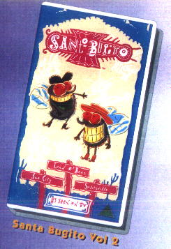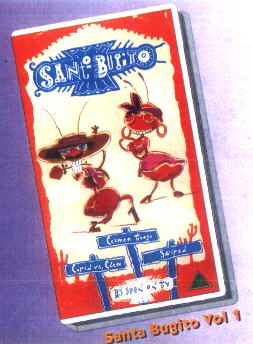 (Left & Right: the first 2 tapes of the British Santo Bugito video collection, straight from the jacket backs; © Warner Vision International (UK) & Klasky-Csupo, Inc.) |