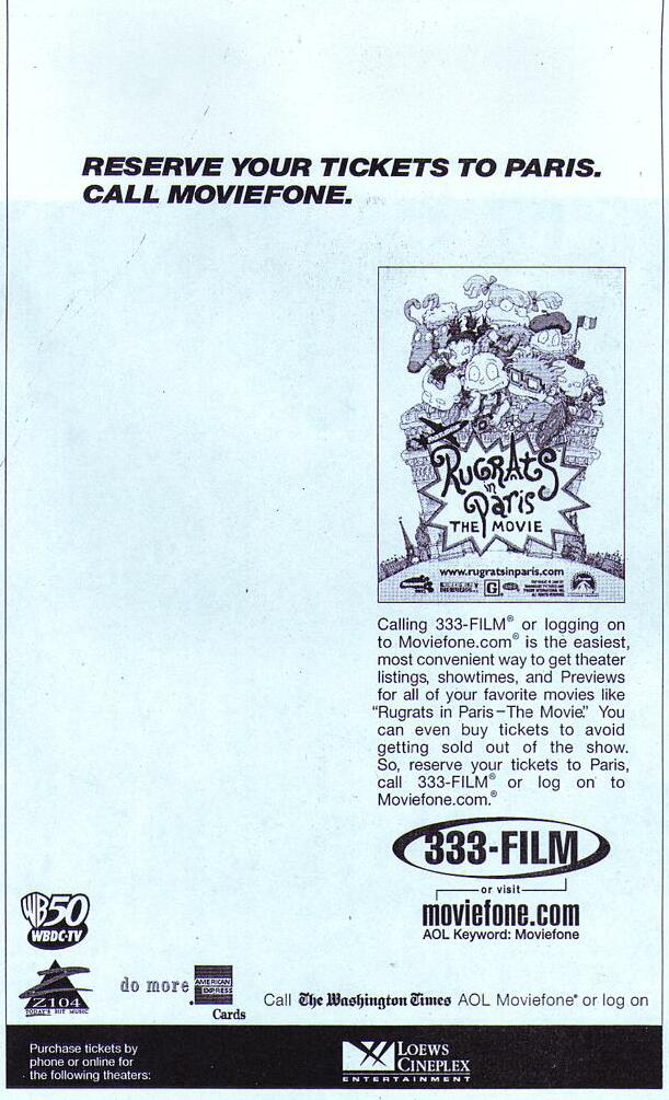 11/17/2000 (II) -- The Washington Times -- Moviefone ad featuring Rugrats In Paris.