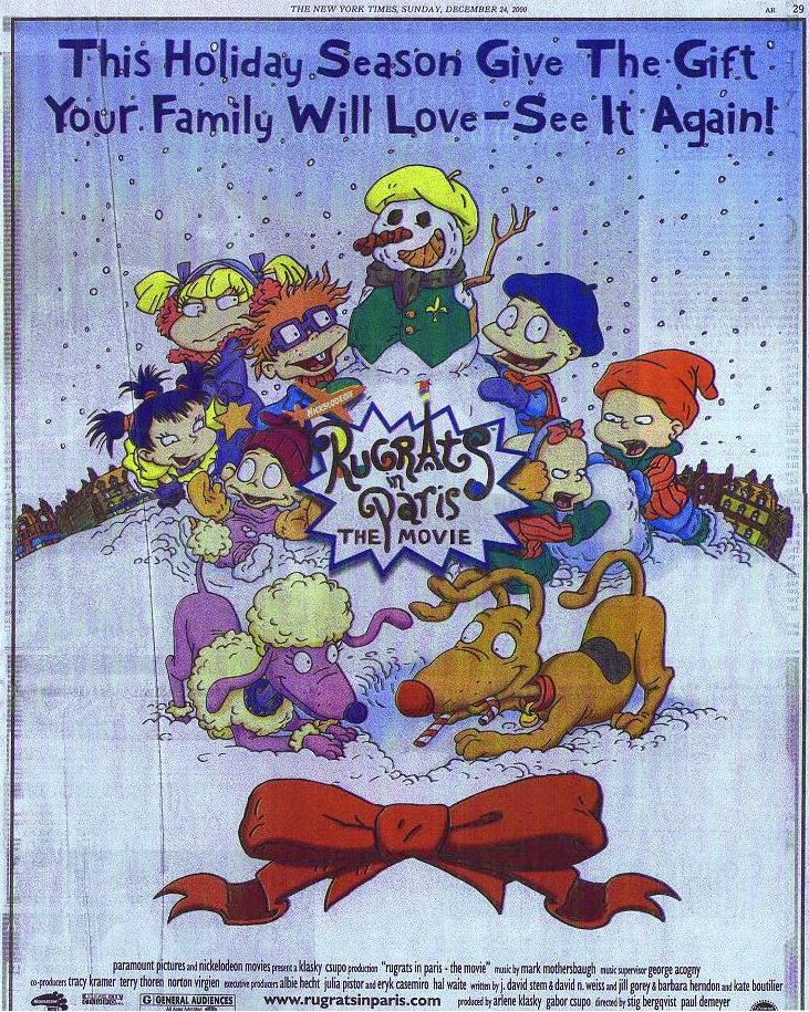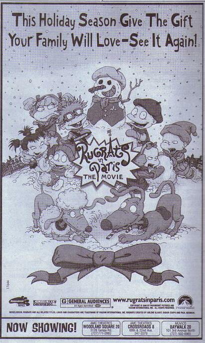 12/22/2000 (III) -- St. Petersburg Times -- special holiday ad, with the Rugrats building a snowman and tagline, "This holiday season, give the gift your family will love -- see it again!"
