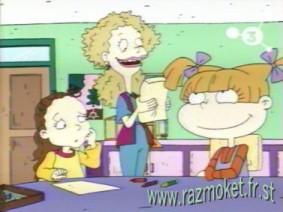 This special will serve as a lead-in for a Rugrats spinoff, "Preschool Daze", which will feature Angelica and Susie in pre-school. In this episode, Angelica and Susie go to their first day at preschool at the local community center. However, their first day ended up being a competition on who can be the best preschooler, as Angelica always tries to outshine Susie. But the big challenge comes when Angelica and Susie accidentally breaks Miss Weemer's favorite coffee cup; it's not just any coffee cup -- it reminded her of her old boyfriend, who has broken up with her awhile ago. Joining them on the mission to fix her broken cup is Harold, who becomes a pain in Angelica's side. Notes: 1. There were plans to show this episode in the fall of 2000, as a back-to-school special (which may or may not be related to the Back To School episode below), but those plans were shelved. 2. Also, this episode was also to have launched Rugrats' 2002 season on 1/21/2002, but that was also scrubbed. This episode was supposed to have aired before Hello Dilly (which takes place at the preschool), but in the US, Hello Dilly aired on Nick before Pre-School Daze, which remains to be seen in the US (not including US military personnel watching AFN, which did air this episode). Because of this, the continuity of this episode has been ruined, at least, for American viewers. As this episode was produced before Hello Dilly, and was the first episode in the 11th season list, Hello Dilly was seen after Pre-School Daze outside the US. (Top Left: Angelica steals a little girl's perfect drawing and claims it as her own. Bottom Left: Angelica, Susie & Harold try to replace Miss Weemer's mug. Both pictures from the France 3 telecast of Preschool Daze, from Super Yo; © 2001-2002 Viacom.) |