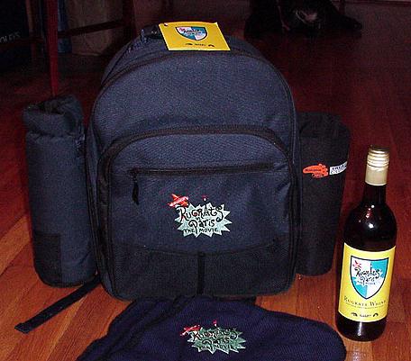 (Above: The Rugrats In Paris backpack picnic kit, with all its accessories, including special, alcohol-free "Rugrats Whine". From eBay; © 2000 Viacom.)