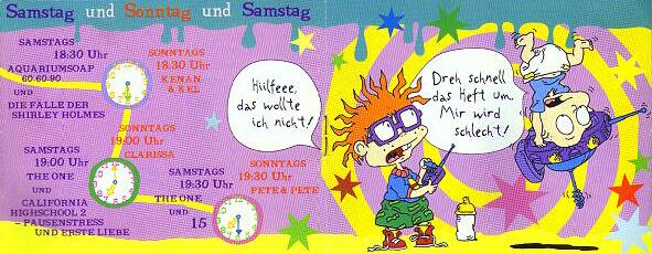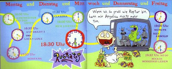 In 1998, the late Nick Germany released the first issue of their series of mini-magazines called Pick-Nick, which showcases a Nick program each issue, plus provide the latest German Nick schedule. It's unclear whether or not it went beyond the first issue, as Nick Germany closed down in June 1998.
