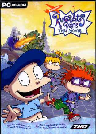 (Left: British version of the Rugrats In Paris PC game, released in Europe by THQ. Packaging is different from the US version. Also, text on the package is in English and Spanish, with inside instructions in English, Spanish and Italian. From eBay; ©2001, Viacom.) | ||||