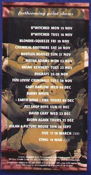 10/99 (II) -- Flyer for the Irish appearance at the Point Theatre in Dublin