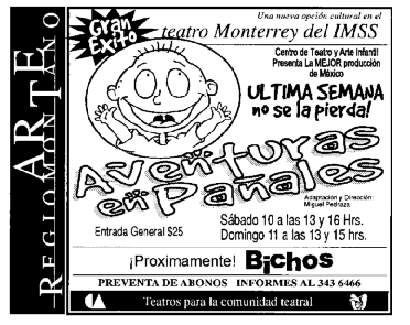 Mexico), for the Teatro Monterrey del IMSS show (4/10-11/99); in Spanish.