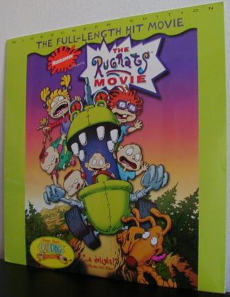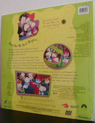 A Laserdisc version of the film was released on 4/20/99; apparently, it has the same features as the DVD. There's also a list of scenes and musical numbers listed on the back of the jacket, very common on most Laserdiscs. The Laserdisc has an SRP of US$29.99, and is available through Pioneer. The main drawback is unlike videocassettes and DVDs, you need to get up and turn the Laserdisc over, just like a conventional vinyl record -- Laserdiscs can only fit 60 minutes of programming on each side. (Left & Right: Front and back of the jacket for The Rugrats Movie Lasterdisc, from eBay; ©1999 Viacom.) |
