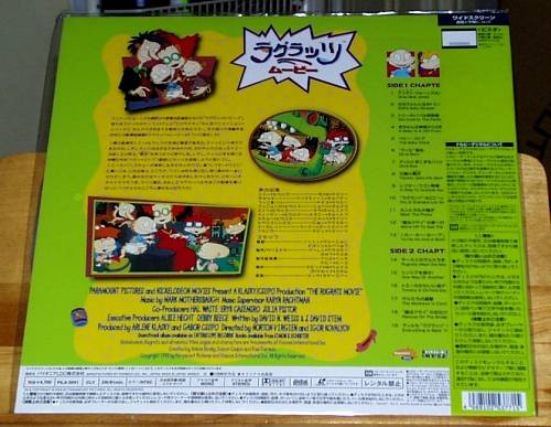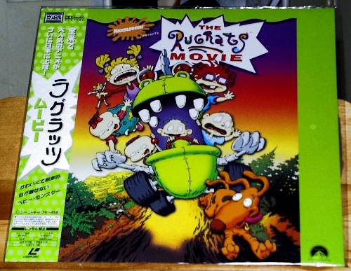 Below: The front & back covers of the Japanese laserdiscs of The Rugrats Movie, also by Pioneer. The features are the same as the US version, except that it has Japanese covers and Japanese subtitles (otherwise, English dialogue). (From eBay; ©1999 Viacom.)