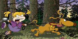 Angelica, using her "Shirley-Lock Holmes" personna, takes Spike to look for Cynthia, only to be dragged around town, as well.