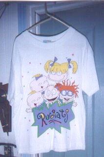 This girl's shirt has the Rugrats gang on top of the "Rugrats" logo. |