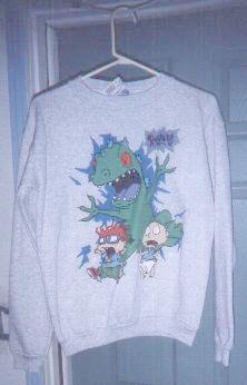 This boy's sweatshirt has Reptar going after Chuckie & Tommy. |