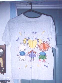 This girl's shirt has Chuckie, Angelica & Tommy on front, and their backsides on the back. |