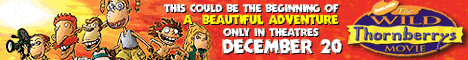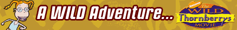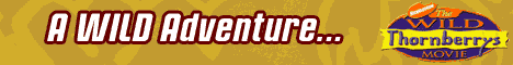 The crossover will be released in the US & Canada on 6/13/2003, about seven months after the stand-alone Thornberrys feature, which will be released on 12/20/2002 in the US & Canada; that film will have Eliza attend a boarding school, and feature guest voices of Rupert Everett, Marisa Tomei, Brenda Blethyn, Alfre Woodard, and Lynn Redgrave as Nigel Thornberry's mother. A made-for-TV prequel will have Nigel knighted in England, which will set the scene for the film. (Left: Poster for "The Wild Thornberrys Movie", from eBay; Above: Banner ads for the film, from Nick.Com; both ©2002 Viacom.) |